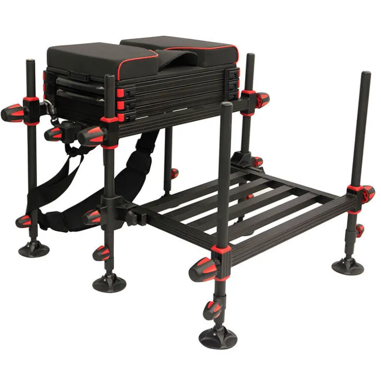 Elles disposent toutes d’une nouvelle assise très confortable avec une mousse mémoire de forme et un bloc-talon intégré qui permet de maintenir votre canne en action de pêche lors de vos opérations d’amorçage ou de frondage.