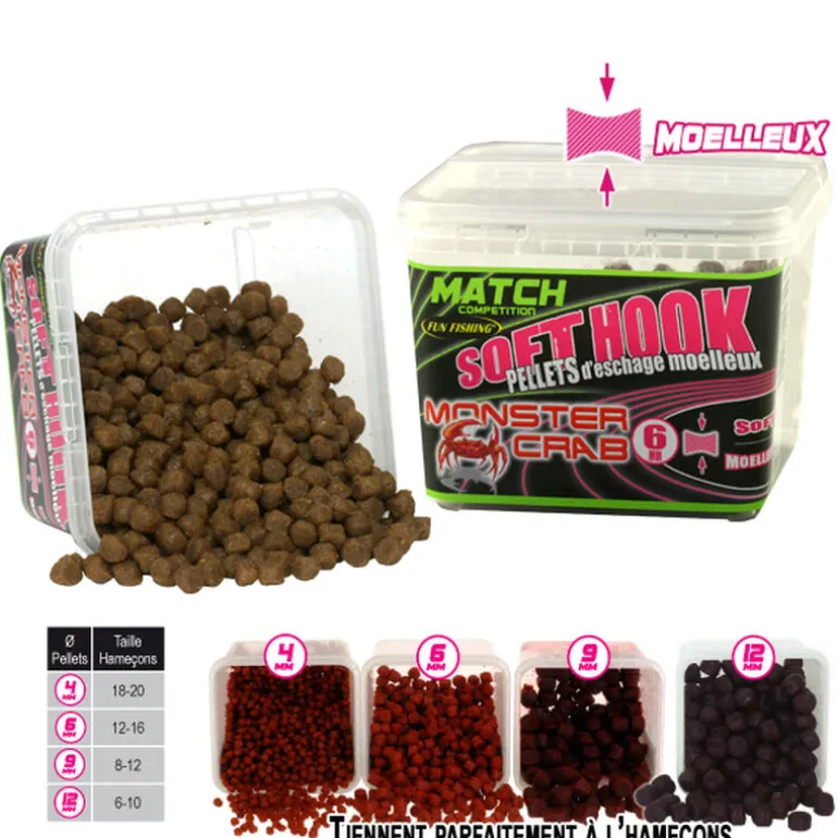 Ces pellets d’eschage SOFT HOOK PELLETS MONSTER CRAB très haut de gamme sont riches en acides aminés libres et en acides gras essentiels. Leur attractivité est renforcée par l’utilisation d’huile de saumon, de bétaïne, d’Amino Concentrate et de stimulateurs d’appétit. Grâce à leur texture moelleuse, ils peuvent être eschés sans élastique et tiennent parfaitement à l’hameçon. Ils peuvent aussi être utilisés pour le feeder ou l’anglaise.