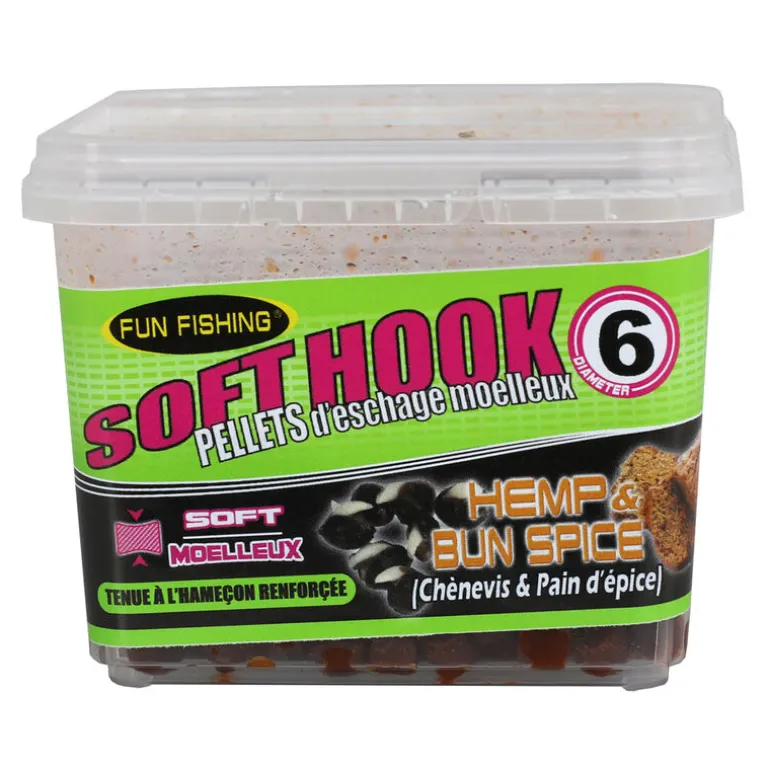 Les seuls pellets qui tiennent à l’hameçon même en cas de ferrage dans le vide ! Ces pellets d’eschage SOFT HOOK PELLETS HEMP AND BUN SPICE très haut de gamme sont riches en acides aminés libres et en acides gras essentiels. Leur attractivité est renforcée par l’utilisation d’huile de saumon, de bétaïne, d’Amino Concentrate et de stimulateurs d’appétit. Grâce à leur texture moelleuse, ils peuvent être eschés sans élastique et tiennent parfaitement à l’hameçon. Ils peuvent aussi être utilisés pour le feeder ou l’anglaise. Diamètres disponibles : 6 mm et 9 mm.
