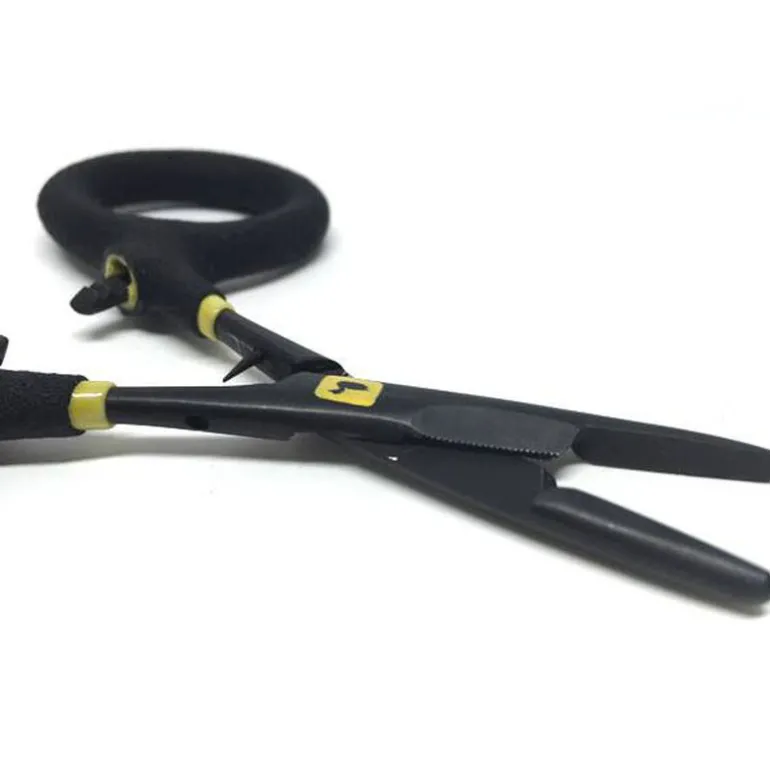 Le système de crans de serrage de cette pince à clamper permet de serrer efficacement un hameçon. Sa longueur est idéale pour décrocher des poissons à dents comme le brochet sans risquer de se blesser.