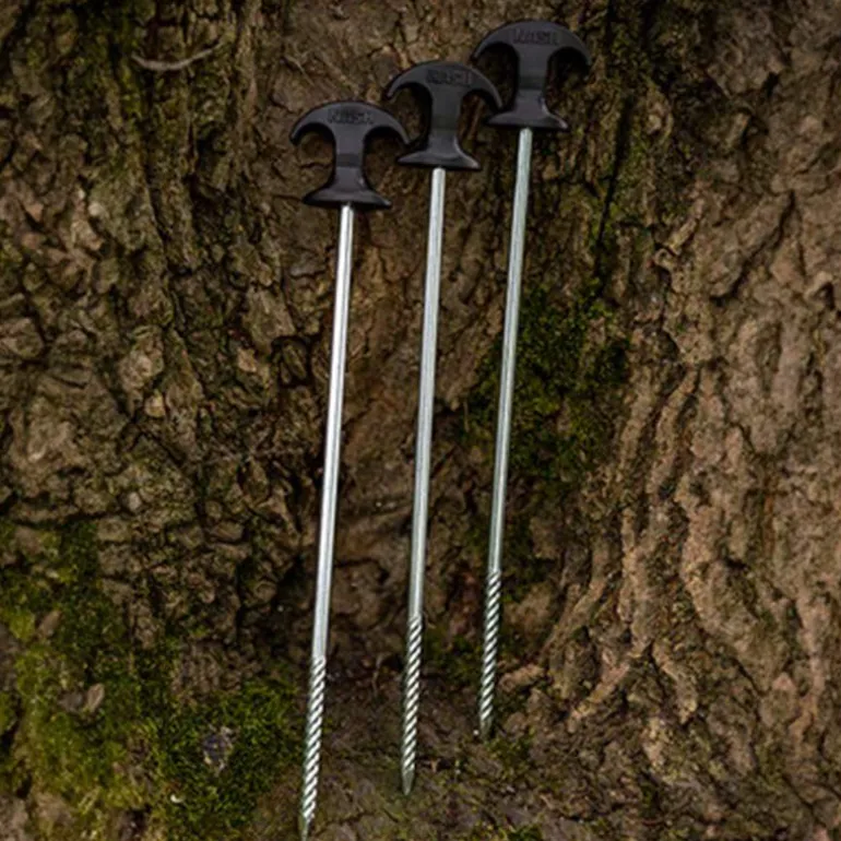 Ce modèle 30 cm est particulièrement recommandé pour les sols souples, afin de garantir une tenue optimale. Le pack contient 10 piquets, livrés dans un sac Nash camouflage à cordon, pratique pour le transport et le rangement.