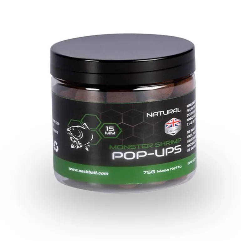 Pop-ups très flottantes renforcées avec du crabe, d’huile de homard et de pâte NashBait de crevettes salées. Parfaites pour garder les Ronnie Rigs, Chods et Stiff Rigs flottants efficacement pendant 24 à 48 heures.