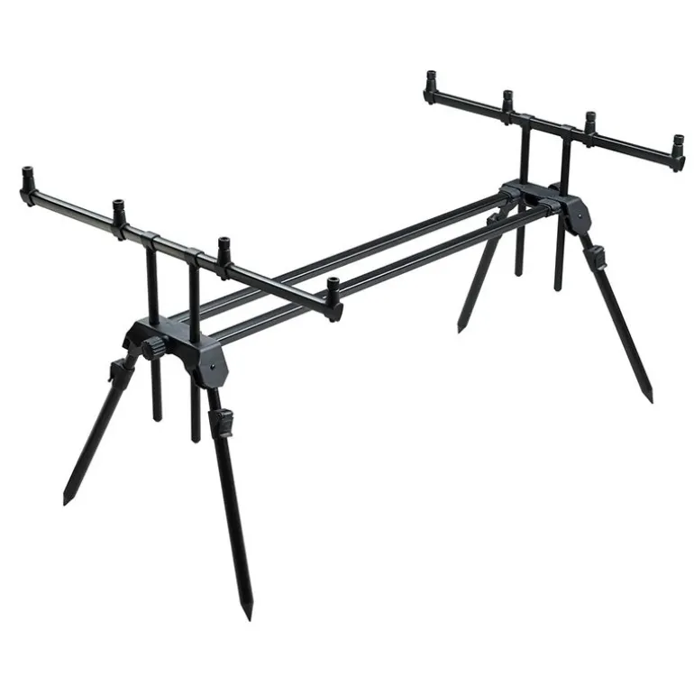 Le Prologic Element Quad-Sky 4 Rod Pod est l’un des rod pods les plus polyvalents et les plus stables jamais conçus par la marque. Construit pour s’adapter à n’importe quelle situation, il permet aussi bien des montages classiques que des positions ultra-hautes pour la pêche à longue distance ou, à l’inverse, des configurations très basses ou totalement inversées.