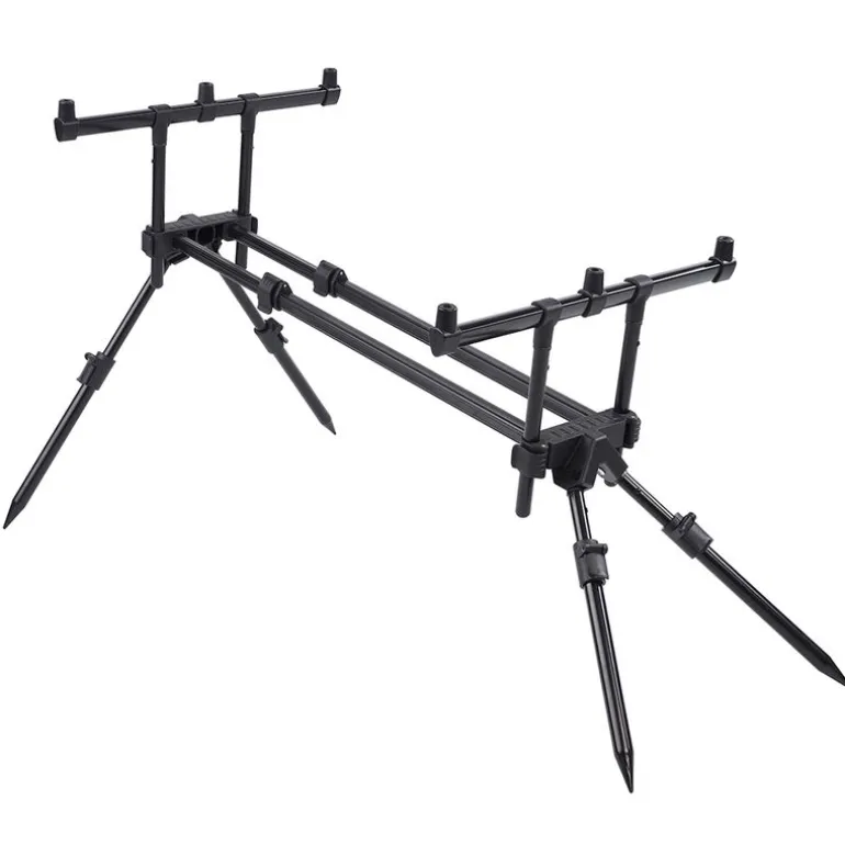 Ses quatre pieds réglables assurent un ancrage fiable, même sur les surfaces les plus irrégulières. Conçu pour 3 ou 4 cannes, ce Rod Pod est un incontournable de la pêche de la carpe en Europe.