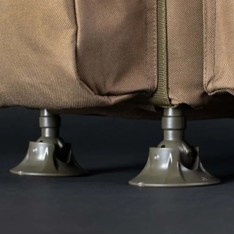 Le fourre-tout repose sur quatre pieds de boue auto-nivelants. Cela maintient non seulement la stabilité, mais soulève également la base du fourre-tout du sol, ce qui le rend idéal pour pêcher dans les nages « pas si idéales ».