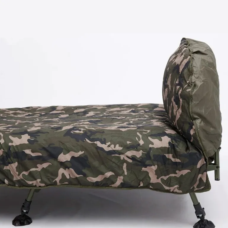 Pour rester parfaitement en place sur votre bedchair, il est doté de capuchons élastiqués sur la tête et le pied ainsi que d’une sangle centrale ajustable, empêchant tout glissement pendant la nuit.