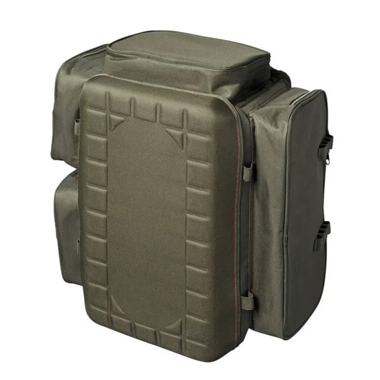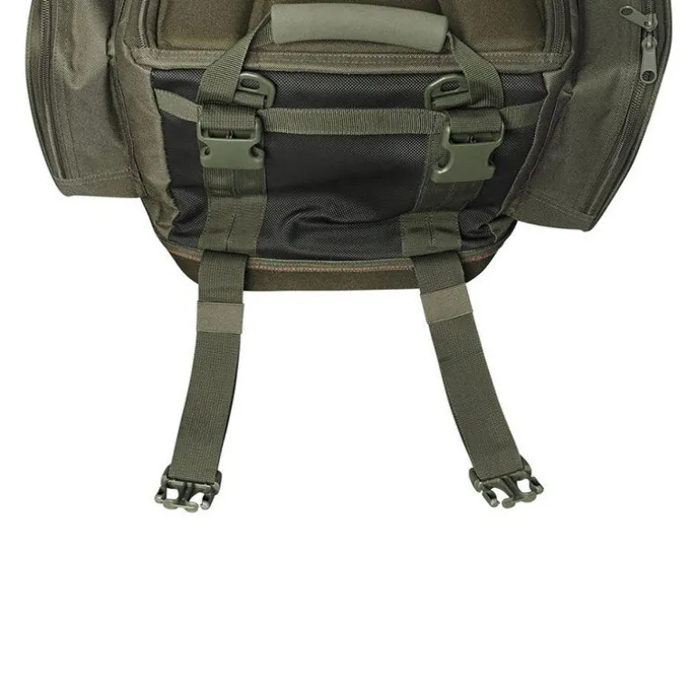 Confortable et pratique, il est équipé d’un panneau dorsal matelassé, de bretelles ajustables, d’une sangle de poitrine réglable et de poignées latérales renforcées. Deux clips externes permettent également de fixer une épuisette ou une élingue de pesée, complétant une conception parfaitement pensée pour les besoins modernes du carpiste mobile.