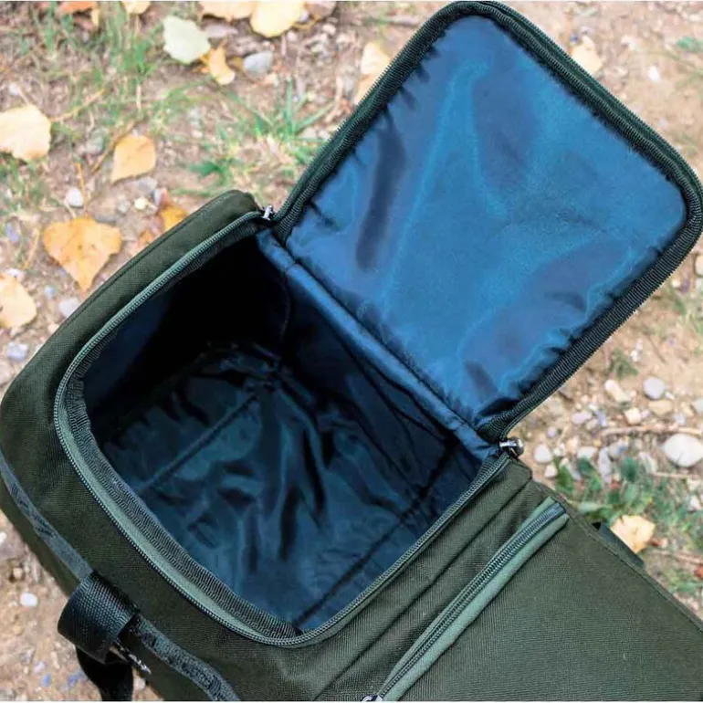 Composé de deux compartiments dont un recouvert d’un revêtement isotherme, vous pourrez ainsi transporter eau, lait ou vos aliments au frais. Très pratique ce revêtement isotherme aura pour but de maintenir la température interne évitant ainsi toute variation. L’autre compartiment sera quant à lui parfait pour entreposer votre bouilloire, casseroles, réchaud, bouteille de gaz et autres. Très pratique vous pourrez ainsi concentrer tous vos aliments et accessoires pour la cuisine pour chacune de vos parties de pêche.