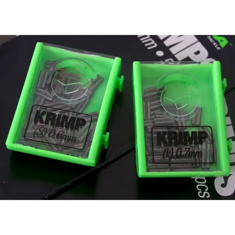 Il y a deux tailles d’attaches « Krimps » disponibles, conçues pour s’adapter à différents matériaux. Les plus petites conviennent pour les monos de taille normale et les tresse gainée comme l’Hybrid Stiff, et les plus grosses sont parfaites pour les gros monos de plus de 30 lbs.