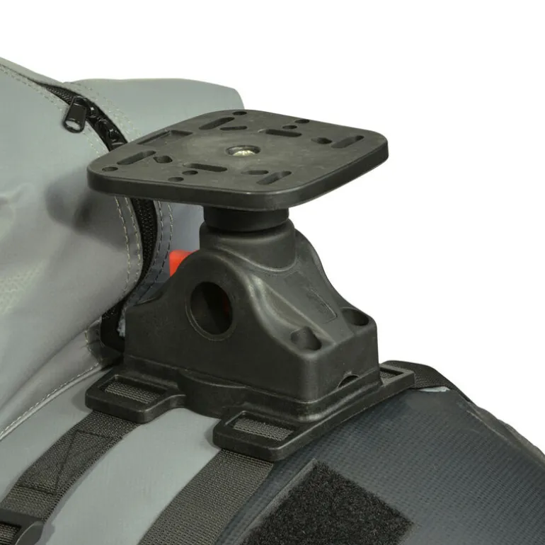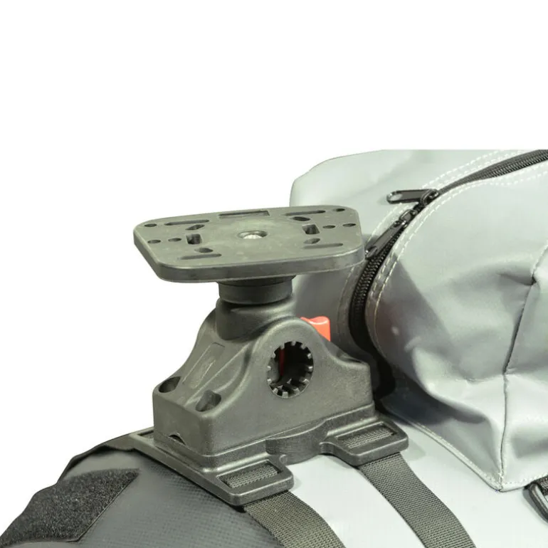 - Une platine vous permettant de fixer l’étrier de l’écran de votre sondeur fixé sur une base permettant de libérer et faire tourner la platine à 360°.