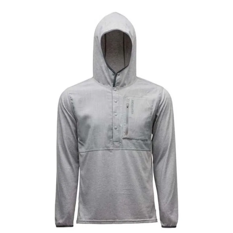 Le Shorebreak Hoodie est un sweat à boutons-pression qui est muni d’une capuche ajustable et d’une poche zippée à la poitrine. Très agréable à porter, il associe la sensation du coton avec les performances du synthétique pour lutter efficacement contre le vent. La matière principale utilisée dans sa confection lui permet de sécher beaucoup plus vite que la plupart des textiles. Il bénéficie de la technologie anti-odeur Freshguard® et est doté d’une protection solaire UPF30. Ses poignets en Lycra sont confortables et ajustés pour un confort optimal en action de pêche.