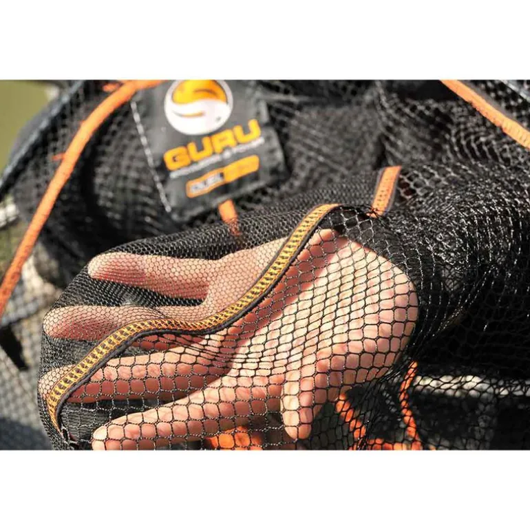 La nouvelle tête d’épuisette GURU DUAL 550 est construite autour d’une armature très solide en aluminium. Cette version avec une double maille de 6 mm sur les côtés et de 2 mm au fond est la plus grande de la gamme. D’un diamètre de 55 cm, le modèle DUAL 550 est particulièrement adapté à la pêche des gros spécimens en carpodrome.