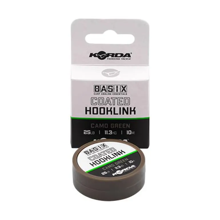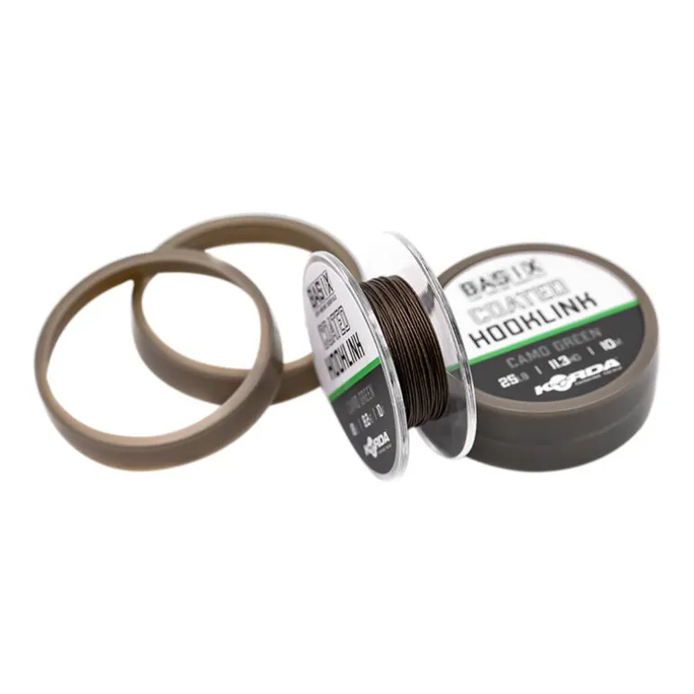 Le BASIX Coated Hooklink est disponible dans un choix de 18lb ou 25lb, et est fourni en bobine de 10m, ce qui devrait être suffisant pour réaliser beaucoup de montages !