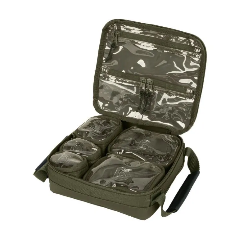 Ce système n’est pas seulement destiné aux plombs, il y a une sélection de poches transparentes zippées intégrées dans le couvercle de la poche principale et chacune des cinq petites pochettes modulaires peut être utilisée selon vos besoins.