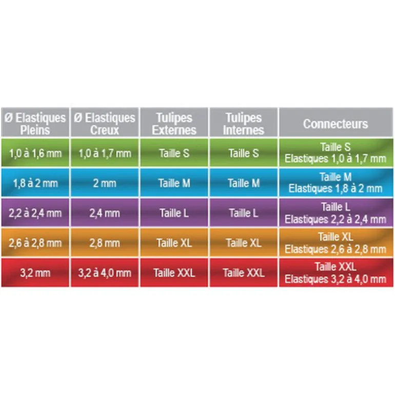 Taille L : couleur violette – élastiques de 2,2 à 2,4 mm