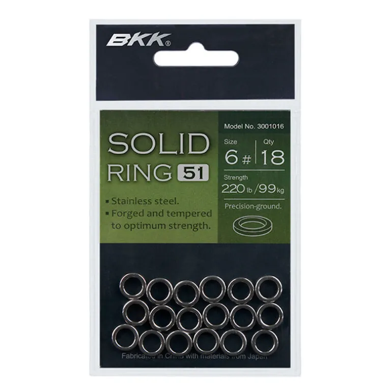 Les anneaux BKK Solid sont fabriqués en acier inoxydable de haute qualité pour éviter la rouille. Les technologies spéciales de poinçonnage et de forgeage augmentent la résistance et réduisent la section de l’acier. Le polissage chimique fin crée une surface lisse qui empêche les dommages à la ligne.