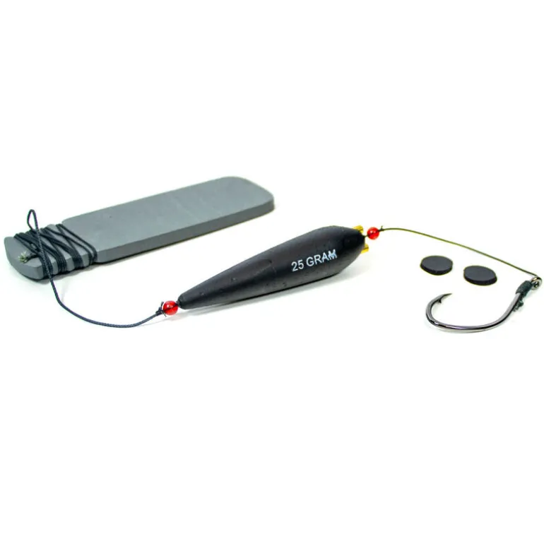 Un bas de ligne d’1m60 avec un flotteur de 25gr et un hameçon simple en 6/0 il vous permettra de pouvoir présenter votre appâts dans le courant en le décollant du fond.