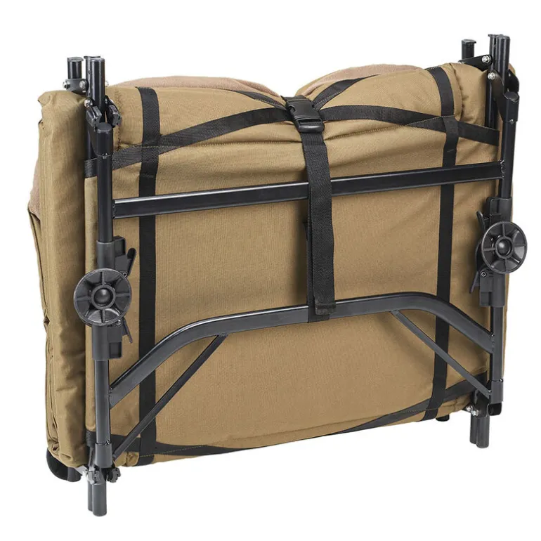 Le Equa est un bed chair 6 pieds à profil plat doté d’un matelas rembourré avec une revêtement polaire et une surépaisseur au niveaude l’oreiller.