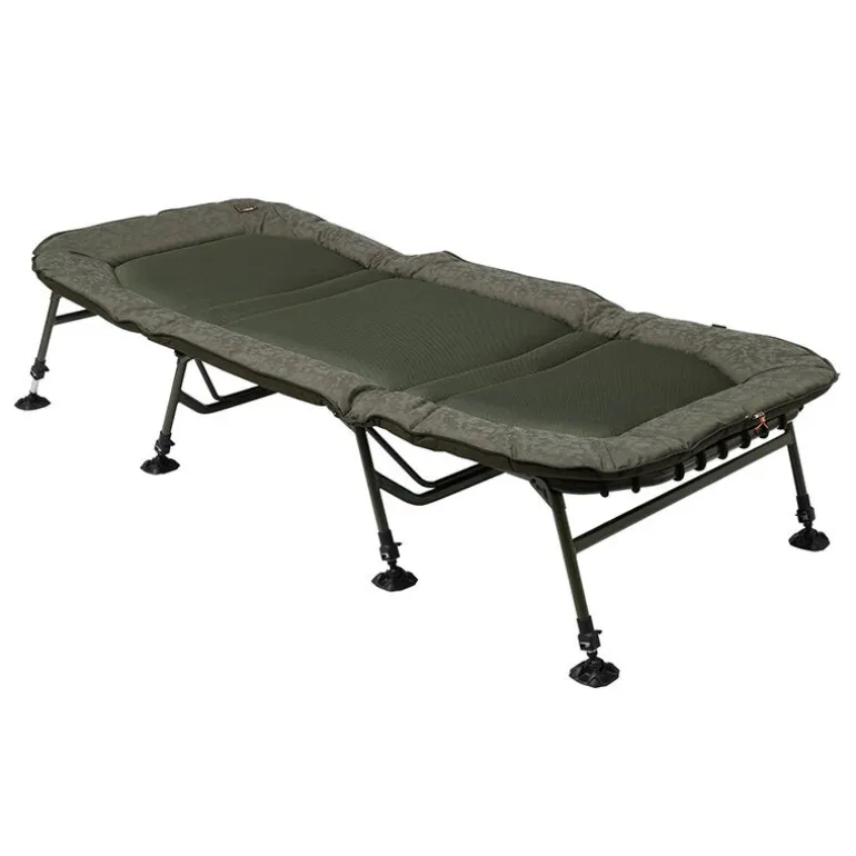 La structure robuste en tubes ovales procure un profil totalement plat, garantissant un maintien lombaire irréprochable, tandis que le matelas en mousse haute densité assure une répartition homogène du poids et une sensation de confort premium. Les huit pieds réglables avec larges pieds anti-boue offrent une stabilité parfaite sur tous les terrains.