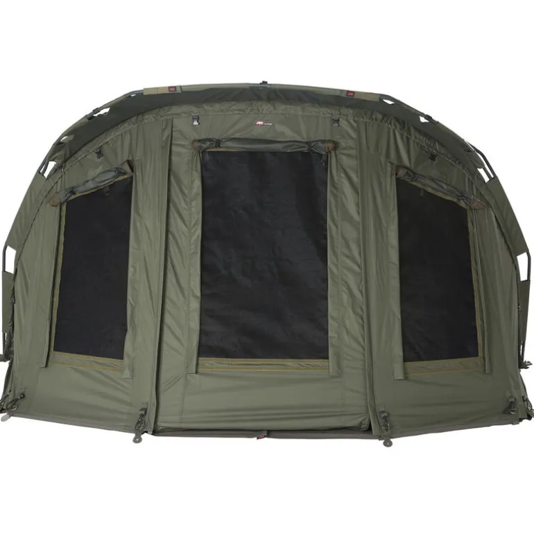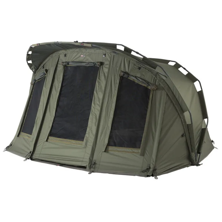 La partie arrière du biwy jrc extreme tx est équipée de 2 larges volets qui contribuent à faire circuler l’air à l’intérieur de l’abri lors des chaudes journées estivales.
