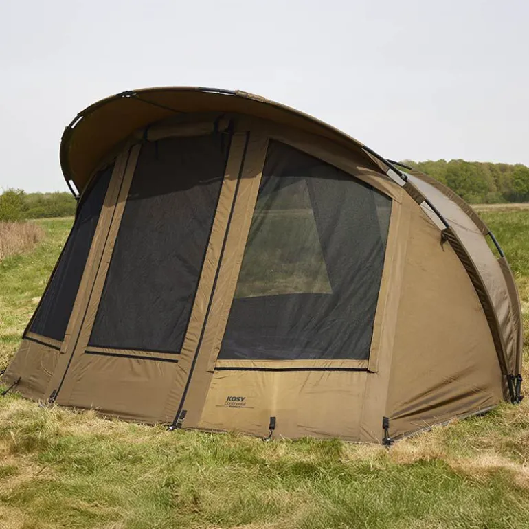 Pratique et bien ventilé, il dispose de fenêtres moustiquaires à l’avant et à l’arrière avec fermeture zip + velcro, ainsi qu’une porte modulable (ouverture par le bas ou en boîte aux lettres) pour s’adapter à la météo. Un bivvy complet, solide et très fonctionnel.