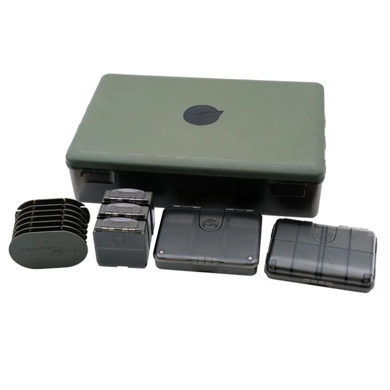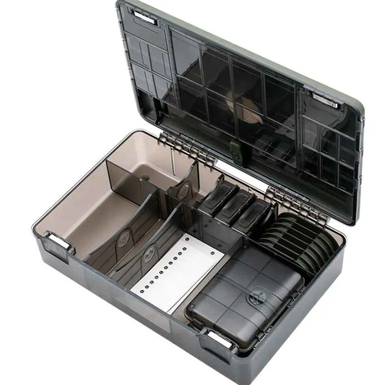 Cette boite de rangement Korda dispose de nombreux emplacements afin de pouvoir accueillir vos filaments, hameçons de la gamme Korda. Equipée de petits emplacements avec couvercle, vous pourrez alors entreposer tous vos accessoires tels que vos émerillons, anneaux, sinkers, stop bouillettes, etc… De plus, vous pourrez venir y loger les 2 petites boites 4 & 8 cases ainsi que le disque Leader Safe afin d’organiser encore plus cette boite et d’y stocker plus d’accessoires.