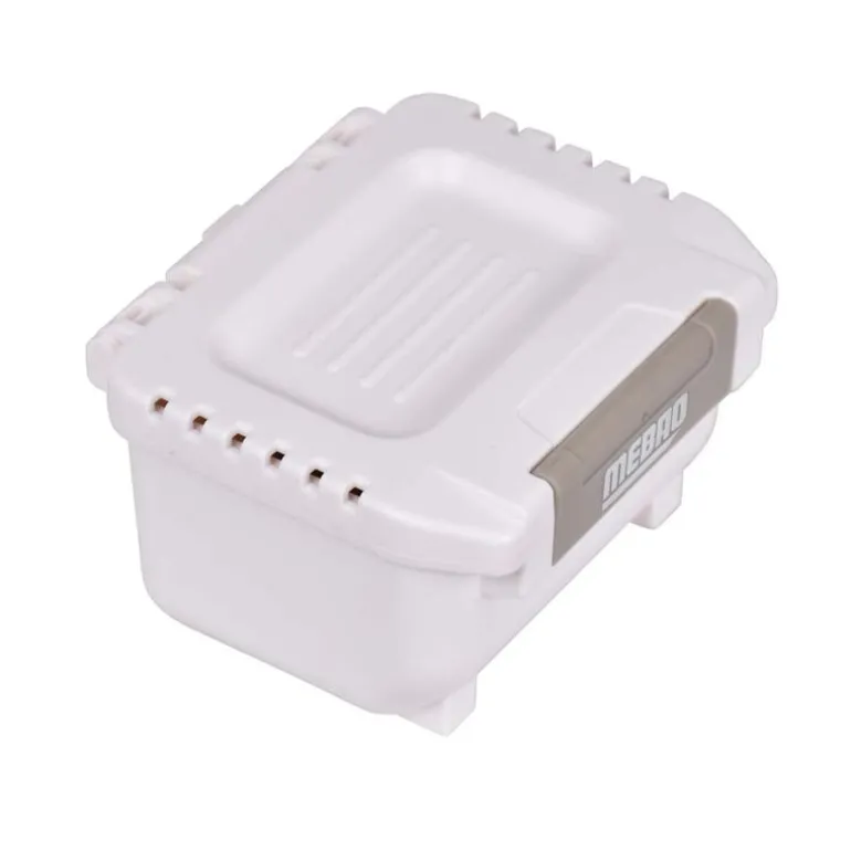 Boite à appât avec double fond perforé pour maintenir ses appâts au sec, se porte à la ceinture grâce à un clip, fermeture solide.