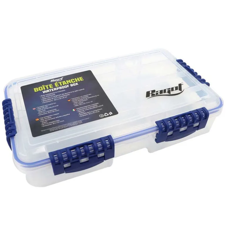 Cette boîte étanche transparente et modulable vous permettra de ranger tout type de matériel de pêche (leurres, …).
