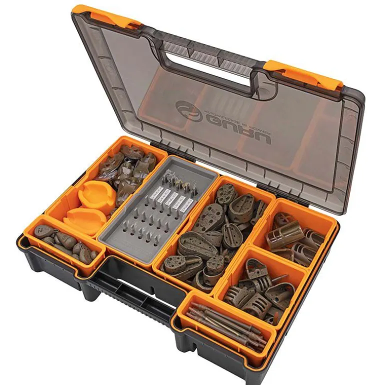 Des inserts supplémentaires permettent aux pêcheurs de stocker des bobines de bas de ligne EVA, des bas de ligne Method-feeder plus courts sur un support dédié, des tiges X-Safe élastiques, des poids de rechange X-Change, des Feeder Links ainsi que tous les accessoires tels que les émerillons, les perles, les clips plombs… dans ce système robuste et compact ! Que les pêcheurs recherchent une boîte à feeder adaptée à la pêche en eau naturelles ou commerciales, il existe des configurations et des arrangements pour les aider à organiser la boîte feeder parfaite !