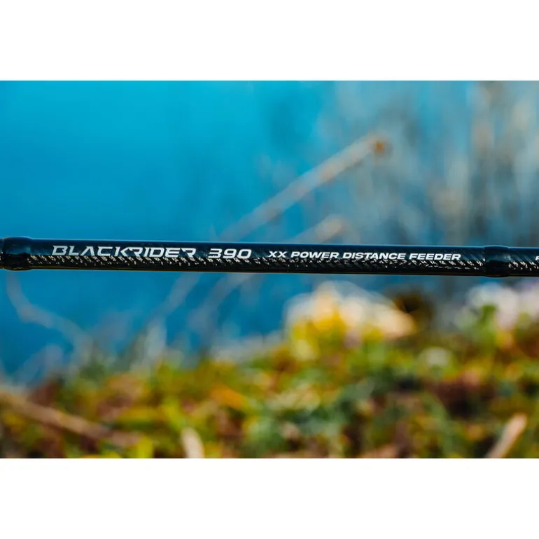 D’une longueur de 3.90m pour une puissance de 50-160g, la BLACKRIDER 390 XX POWER DISTANCE est sans conteste le modèle le plus puissant de la gamme BLACKRIDER! Son énorme réserve de puissance la rend très polyvalente puisqu’elle va convenir à la fois pour les pêches lourdes en rivières et en fleuves avec de grosses cages feeder, pour les pêches de «spécimens» comme les grosses carpes, esturgeons et silures, ainsi que pour les pêches à très longue distance (>90m). Elle conviendra également parfaitement en guise de canne d’amorçage lorsqu’elle est équipée de son scion en 5 Oz. Son blank surpuissant combiné à des anneaux sudimensionnés (Anneau de départ en 30mm et de pointe en 6mm) permet de lancer avec précision et facilité des cages feeder jusqu’à 120g. La taille des anneaux permet l’utilisation de nylons de très fort diamètre. Malgré sa puissance démesurée, elle dispose d’une action progressive avec une pointe sensible qui lui permet de conserver une très bonne sensibilité pour la détection des touches difficiles. Elle est livrée avec 3 scions en carbone de puissances différentes: 3 Oz, 4 Oz et 5 Oz.