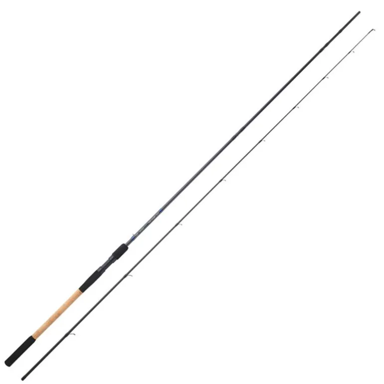 Elle est équipée d’une poignée mixte liège / EVA de petite section, assurant un confort optimal en main et une excellente maîtrise lors des combats. Les anneaux surélevés favorisent une bonne glisse du fil, tandis qu’un accroche-ligne facilite le transport et le rangement.