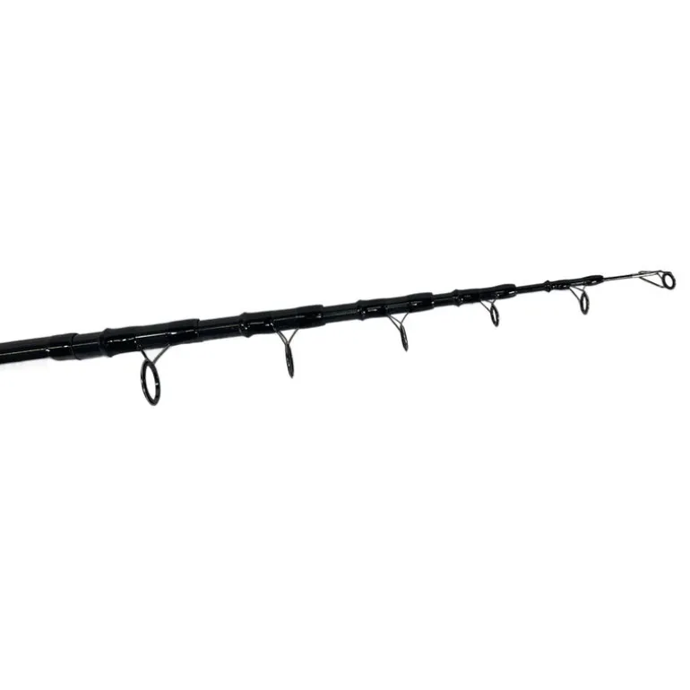 La canne est équipée d’anneaux robustes et résistants, assurant une glisse fluide de la ligne, même avec des montages lourds. Le porte-moulinet tubulaire à vis, solide et ergonomique, garantit un maintien sécurisé du moulinet et un confort d’utilisation constant, même lors de longues sessions de pêche.