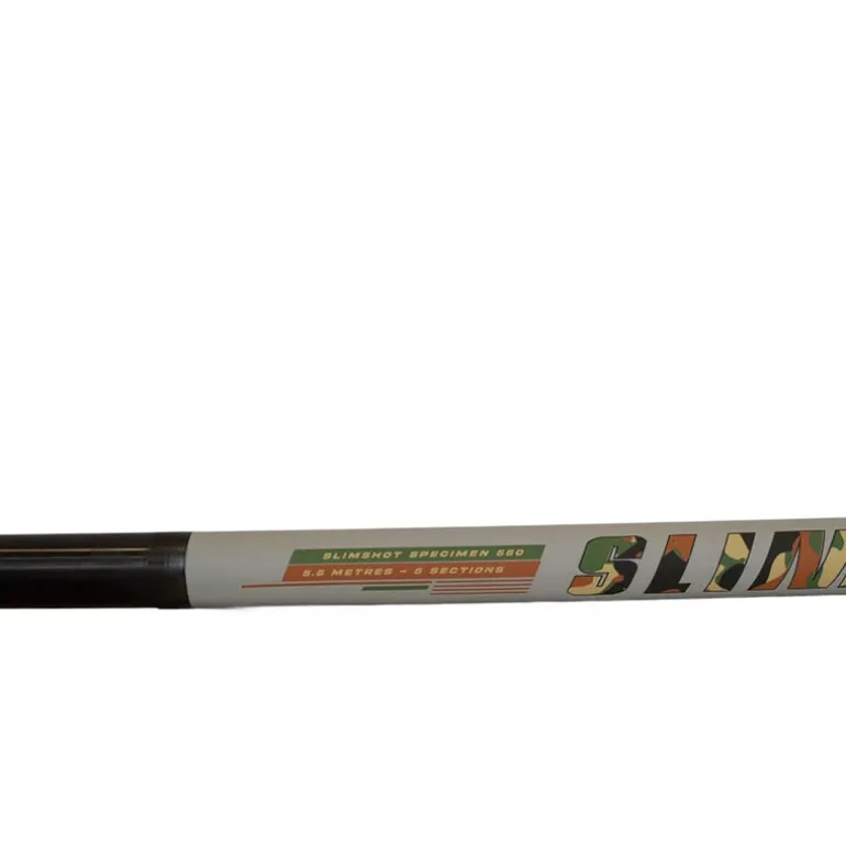 La canne SLIMSHOT PRO SPECIMEN 580 est un modèle spécifiquement développé pour les pêches fortes de «spécimens» en bordure. Grâce à son deuxième talon sérigraphié et renforcé, elle peut être utilisée en longueur pleine à 5.80m, où en retirant le talon pour obtenir une canne plus courte, portée à 4.70m. Fabriquée à partir de nappes carbone haut module, la SLIMSHOT PRO SPECIMEN 580 a été mise à rude épreuve lors des phases de test, et sa grosse réserve de puissance lui a permis de contrer sans effort de très gros poissons, tels que des carpe de 15Kg+ ou des esturgeons de 20Kg+!