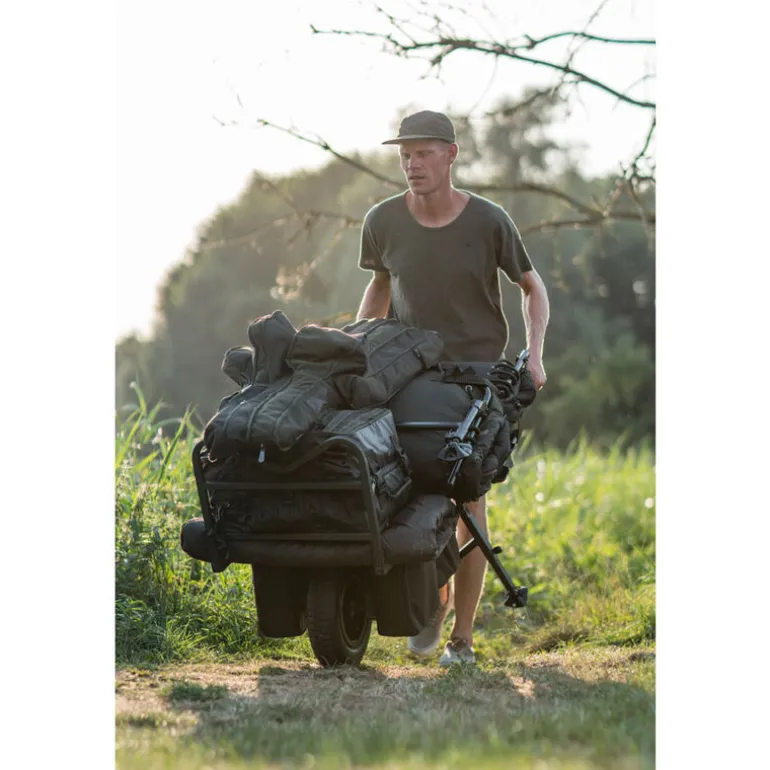 Ce chariot est idéal pour les pêcheurs mobiles et les courtes sessions. Il offre un encombrement réduit pour être facilement transporté dans un coffre de voiture mais il permet d’emmener facilement un bedchair et tout le nécessaire pour vos sessions de pêche. Il possède plusieurs points d’attache afin de bien fixer tout votre matériel. Les 3 sacs fournis vous permettront de stocker vos appâts, waders … La grande roue tout terrain facilitera les déplacements même sur les terrains accidentés. La grande roue facilitera les déplacements même sur les terrains et les 2 pieds arrière équipés de soucoupes anti-boue assureront une bonne stabilité au chariot même chargé.