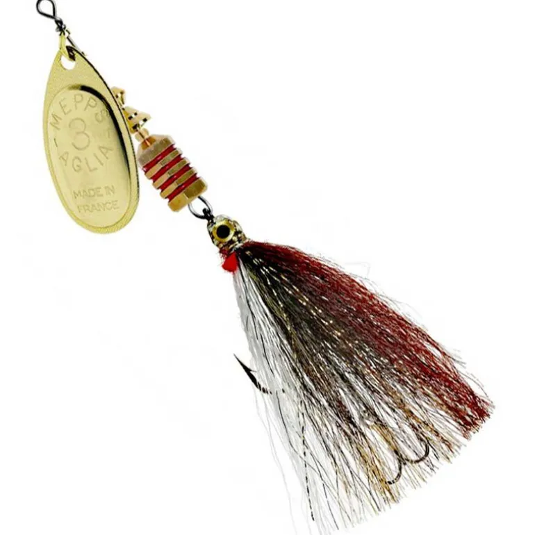 La cuiller tournante Mepps Aglia TW or streamer vairon est la référence des leurres métalliques de sa catégorie. Grâce à son cône de rotation évoluant en fonction des forces exercées dans l’eau, elle s’anime dès qu’elle touche l’eau et à toutes les vitesses de récupération.