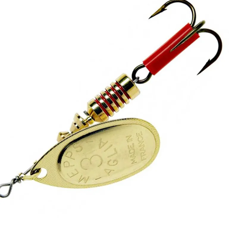 La cuiller tournante Mepps Aglia Or est la référence des leurres métalliques de sa catégorie. Grâce à son cône de rotation évoluant en fonction des forces exercées dans l’eau, elle s’anime dès qu’elle touche l’eau et à toutes les vitesses de récupération.