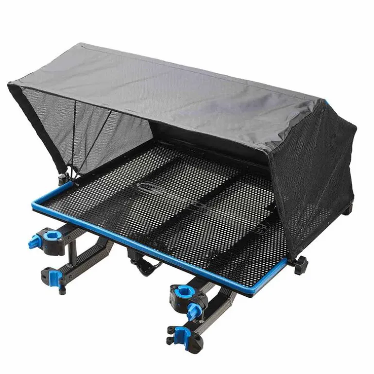 Équipée d’une tente au design Squadra, élégante et moderne avec son coloris bicolore noir/bleu et son logo Garbolino, elle protège efficacement vos esches et accessoires des intempéries et du soleil. Les rebords en caoutchouc bleu ainsi que les bandes de protection en PVC sur les arrêtes apportent robustesse, durabilité et sécurité lors de la manipulation.