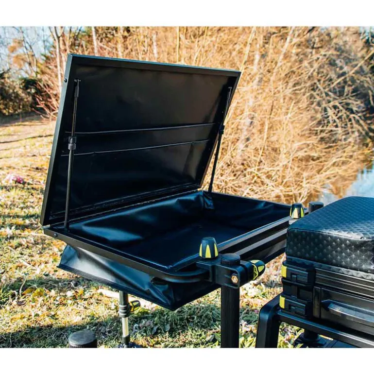La desserte WATERPROOF SIDE TRAY a été spécialement développée pour les pêcheurs au coup qui pratiquent quelles que soient les conditions météo. Conçue pour affronter les journées pluvieuses, elle assure une protection optimale de votre matériel et de vos appâts contre la pluie.