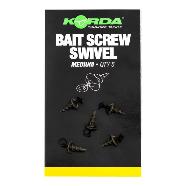 Le Korda Bait Screw Swivel vous permet de changer votre appât rapidement lorsque vous utilisez un montage avec un anneau ou un micro émérillon en guise de cheveu. Vissez simplement la vrille dans l’appât jusqu’à la butée soit en contact avec l’appât. Trop forcer avec la vrille pourrait fendre et fragiliser votre appât et ainsi occasionner sa perte lors du lancer. Parfait pour utiliser sur un Spinner Rig Peut être utilisé avec des appâts mous