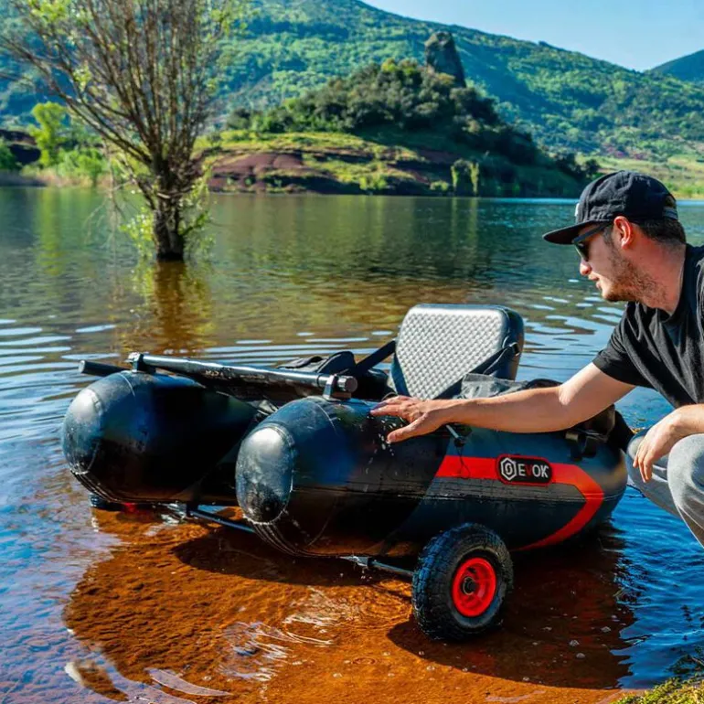 Pour faciliter vos déplacements, le FT 150 est équipé d’un « wheel kit », un système de fixation à roues qui permet de tirer votre float-tube jusqu’au point de mise à l’eau, évitant ainsi de le traîner ou de l’abîmer. Une fois arrivé à destination, il ne vous reste plus qu’à déployer vos équipements : deux poches latérales amovibles, une paire de rames robustes.