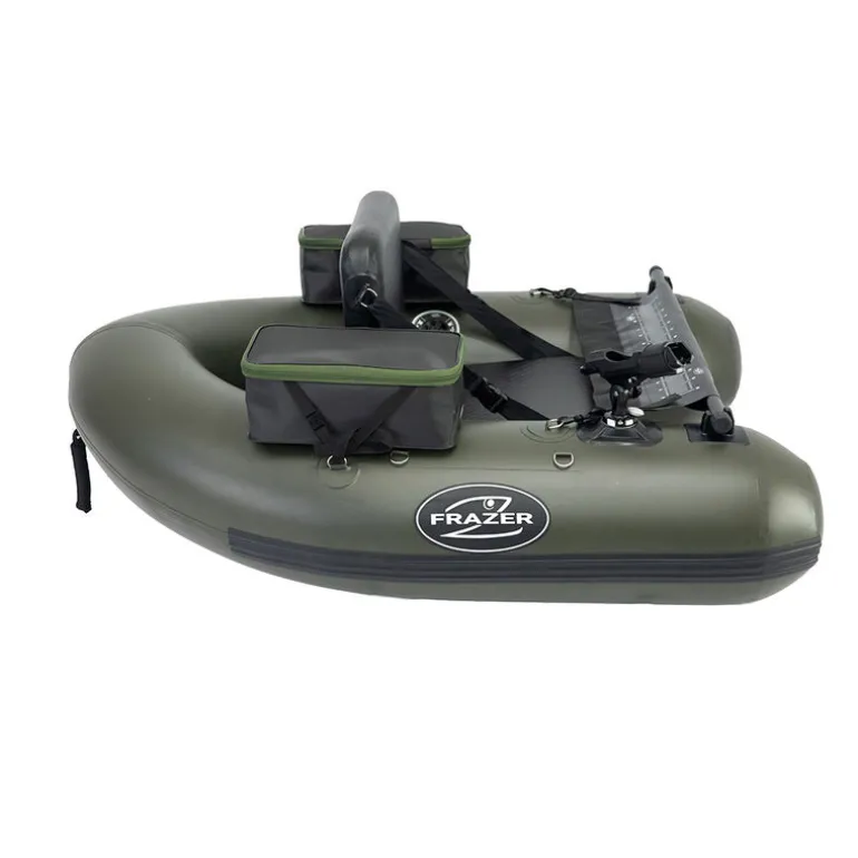 Le Frazer Ranger Evo 150 reprend les lignes et l’élégance du Ranger Evo 170 dans un format plus compact et épuré, idéal pour les plans d’eau restreints (rivières, étangs) ou les pêcheurs soucieux d’acquérir une embarcation légère. Avec ses 1,50 m de long pour 1,20 m de large (45 cm de largeur interne) et ses tubes de 30 cm de diamètre, il reste suffisamment stable tout en pesant seulement 7,5 kg. Construit en PVC de 0,7 mm et doté d’une bande « rubber » anti-abrasion sous la coque et sur les flancs, il vous garantit robustesse et longévité, sans sacrifier le confort : sa forme en V et la réhausse du siège drop-stitch vous maintiennent parfaitement au-dessus de l’eau.