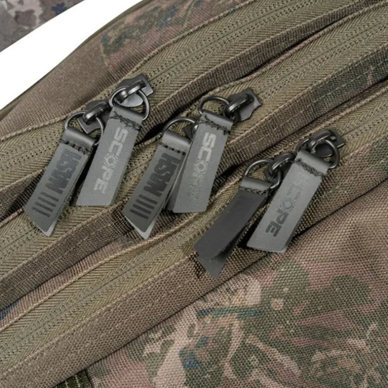 Grâce aux patchs Velcro et aux boucles de maintien, il est possible d’ajouter instantanément des fourreaux 1 Rod Skins ou des sacs Stink Bags, augmentant ainsi la capacité de transport de vos cannes de manière illimitée.