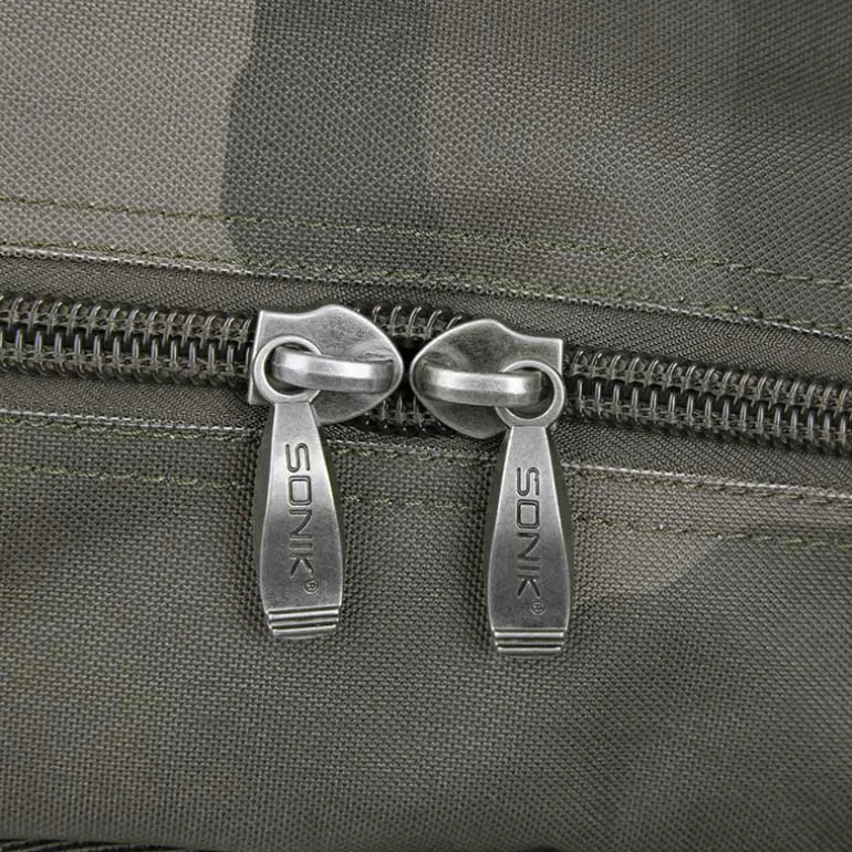 Son système innovant de poches latérales modulables permet d’ajouter un brolly type bivvy, tout en transportant facilement une épuisette, un sac de pesée, un sac de conservation ou encore des piques. Il est également possible de fixer deux cannes supplémentaires à l’extérieur. Pratique à transporter, il dispose de deux poignées de chargement, d’une bandoulière rembourrée et de deux poches externes pour plombs.