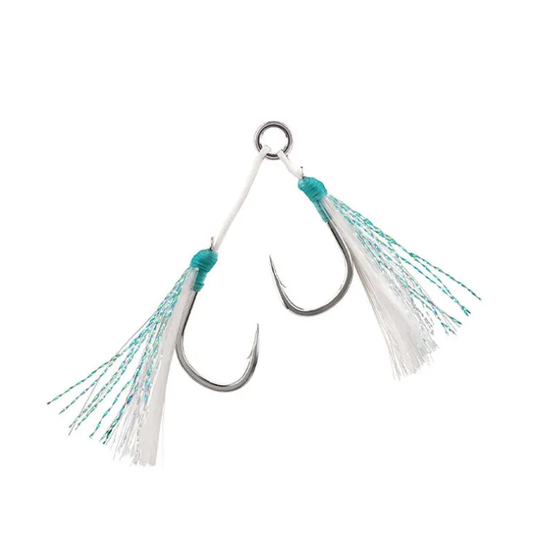 Assist light double avec hameçons HG ( affûtage à la main) montés sur tresse renforcée avec ligature phosphorescente sur teaser et anneau soudé Inox.
