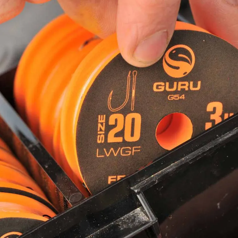 Les Spécialistes et les compétiteurs ont rapidement adopté les hameçons GURU spécial feeder LWGF. Ils sont désormais disponibles directement montés sur des bobines en mousse ! D’une longueur de 1 m, les hameçons montés LWGF FEEDER RIG 1M sont conditionnés par 8 sur une bobine en mousse et sont montés avec le nylon GURU N-GAUGE. Ces bas de ligne montés sont disponibles dans 6 tailles différentes :