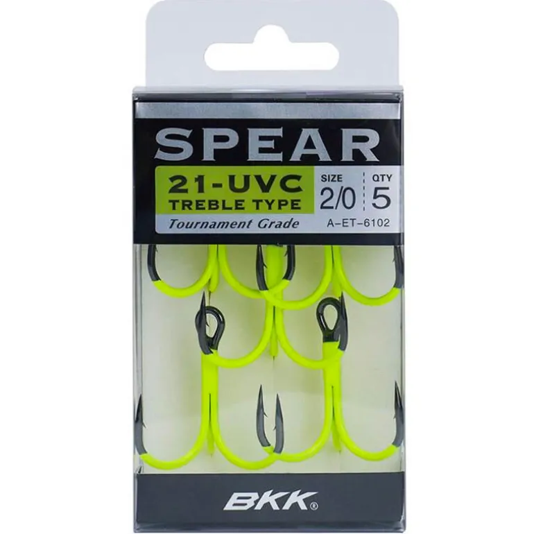 Fort de l’immense succès de ses triples BT621-UVO oranges, BKK nous propose maintenant cette version UVC, un colori « Chartreuse » qui ne laissera pas indifférent les pêcheurs de brochets, sandres, truite mais aussi de nombreuses autres espèces! Comme la version orange, cette série est disponible dans une large gamme de tailles allant du 12 pour armer vos petits PN ou souples au 3/0 pour vos plus gros shads à brochet!
