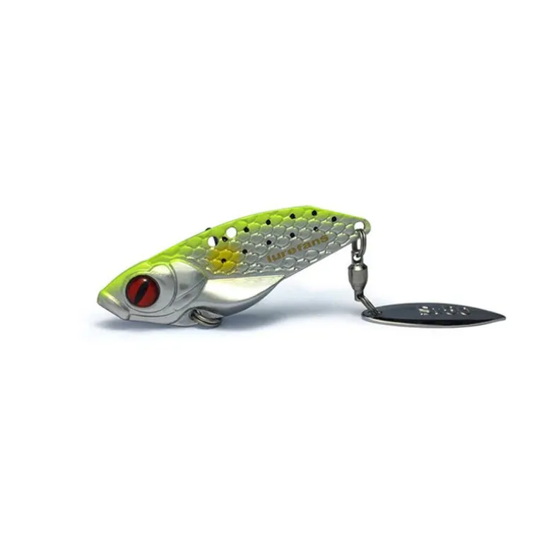 Le leurre Lurefans Super Rattlesnake est une combinaison ingénieuse entre une lame vibrante et un Tailspinner. Contrairement aux modèles classiques centrés uniquement sur l’action de la palette, ce leurre associe les vibrations dynamiques de la lame aux mouvements caractéristiques de la palette tournante.