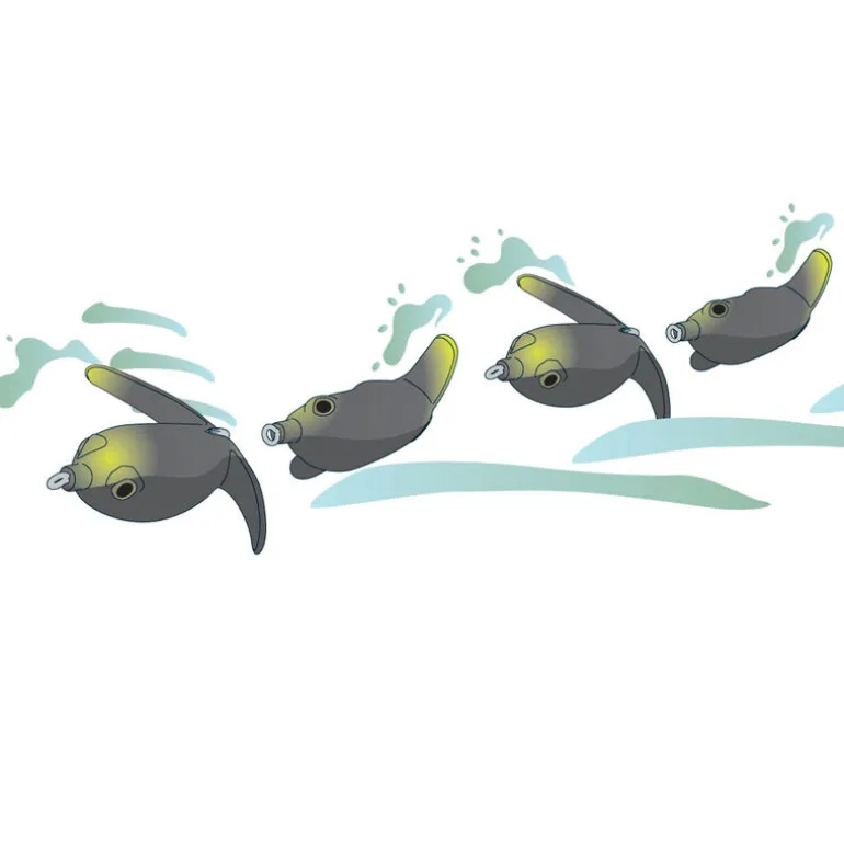 - Nage attractive et bruyante pour attirer les prédateurs de loin et déclencher les attaques dans le couvert