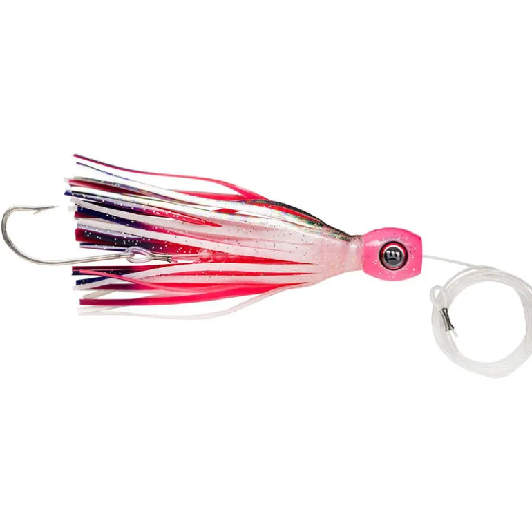 La tête en métal (sans plomb) permet une vitesse de traîne rapide (jusqu’à 12 noeuds) pour couvrir plus de terrain. La conception concave de la tête crée une traînée de bulles faisant paraître le leurre beaucoup plus gros qu’il ne l’est.