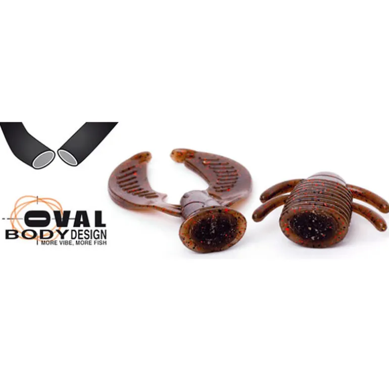 Son corps dense est gorgé de sel et d’attractant à la crevette. Ses pattes présentent la particularité de « flapper » lors de la récupération ainsi qu’à la descente. Extrêmement polyvalente, elle s’adapte à pratiquement toutes pêches : du power fishing à l’aide d’un rubber jig football ou d’un rubber jig swim, montée seul en montage Carolina ou texas rig, ou encore pour les pêches du bar à vue en eaux clair…